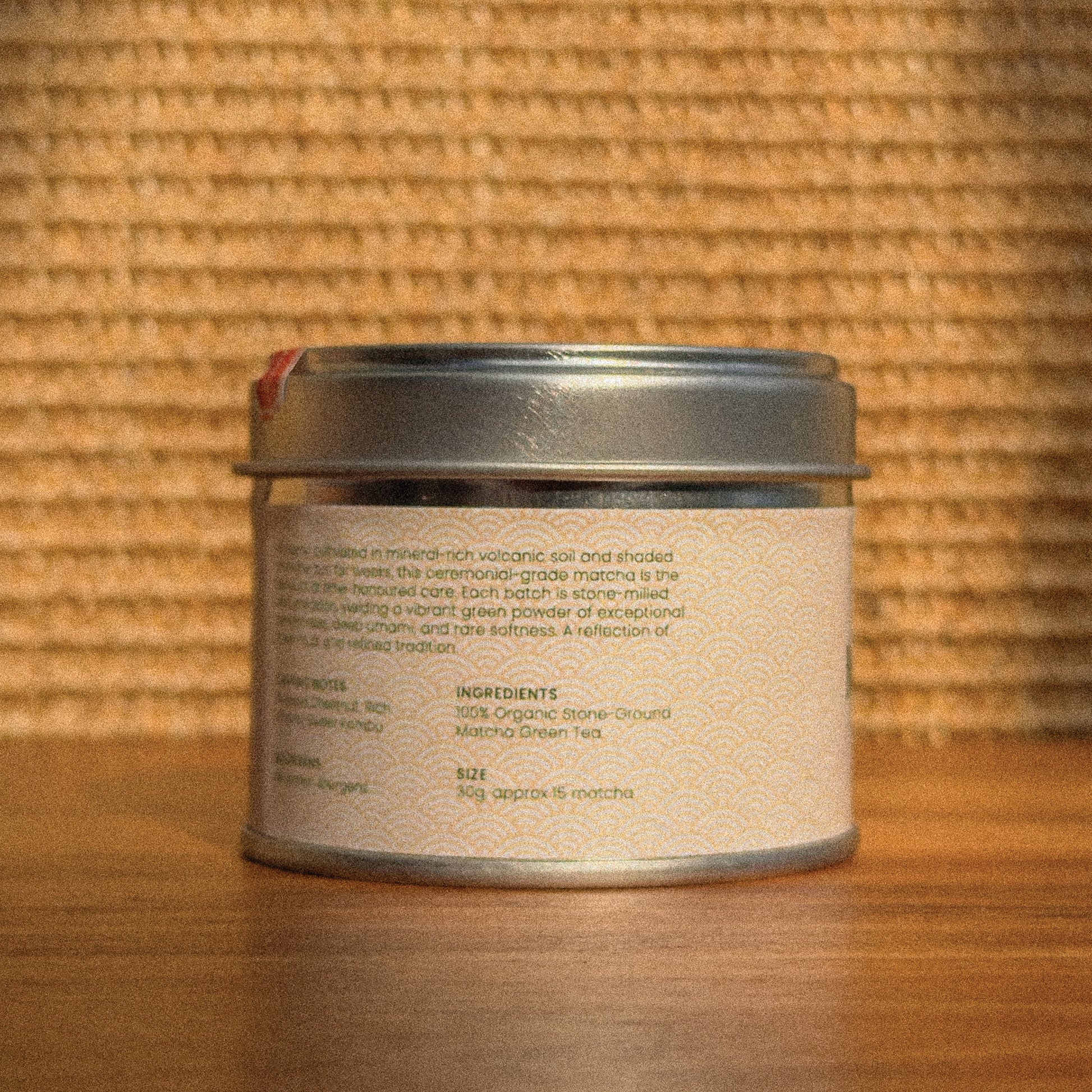 Sourced from renowned tea fields, this Wakatake ceremonial-grade matcha is crafted from the youngest first-flush leaves. Shaded for several weeks before harvest to increase chlorophyll and L-theanine, this allows the leaves to develop their vivid green colour, smooth texture, and rich umami depth. Each batch is stone-milled in small quantities, producing an exceptionally fine powder with remarkable softness and balance. Defined by its deep umami, natural sweetness, and vibrant hue, this is true ceremonial matcha.